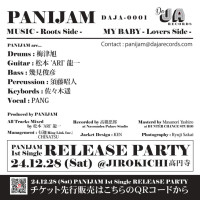 Rootsサイドと銘打ったA面はとことんアーシーな演奏と迫力満点なPANGのヴォーカルが見事に融合した「MUSIC」を収録。そしてB面はPANIJAM流LoversRockといえる「MY BABY」を収録。